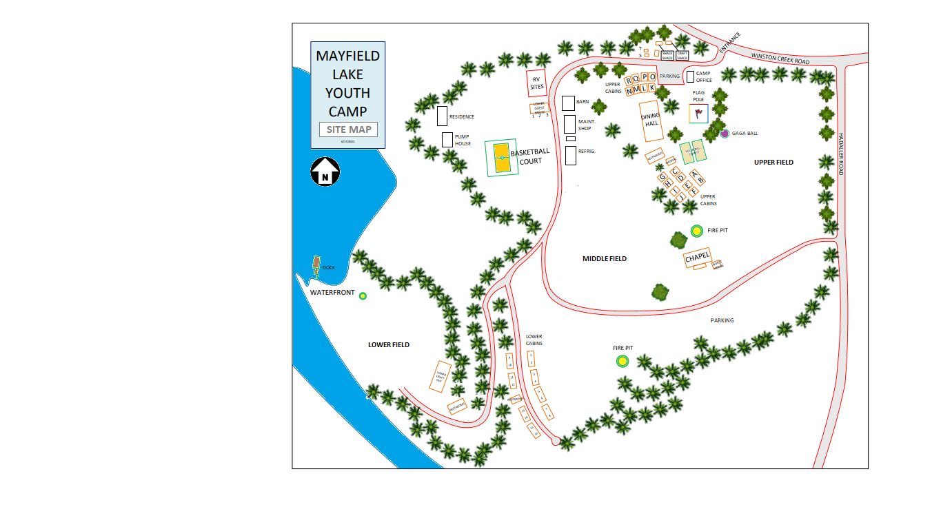 For more information about our facilities or to schedule a campground tour, please contact us at mayfieldlakeyouthcamp@tds.net